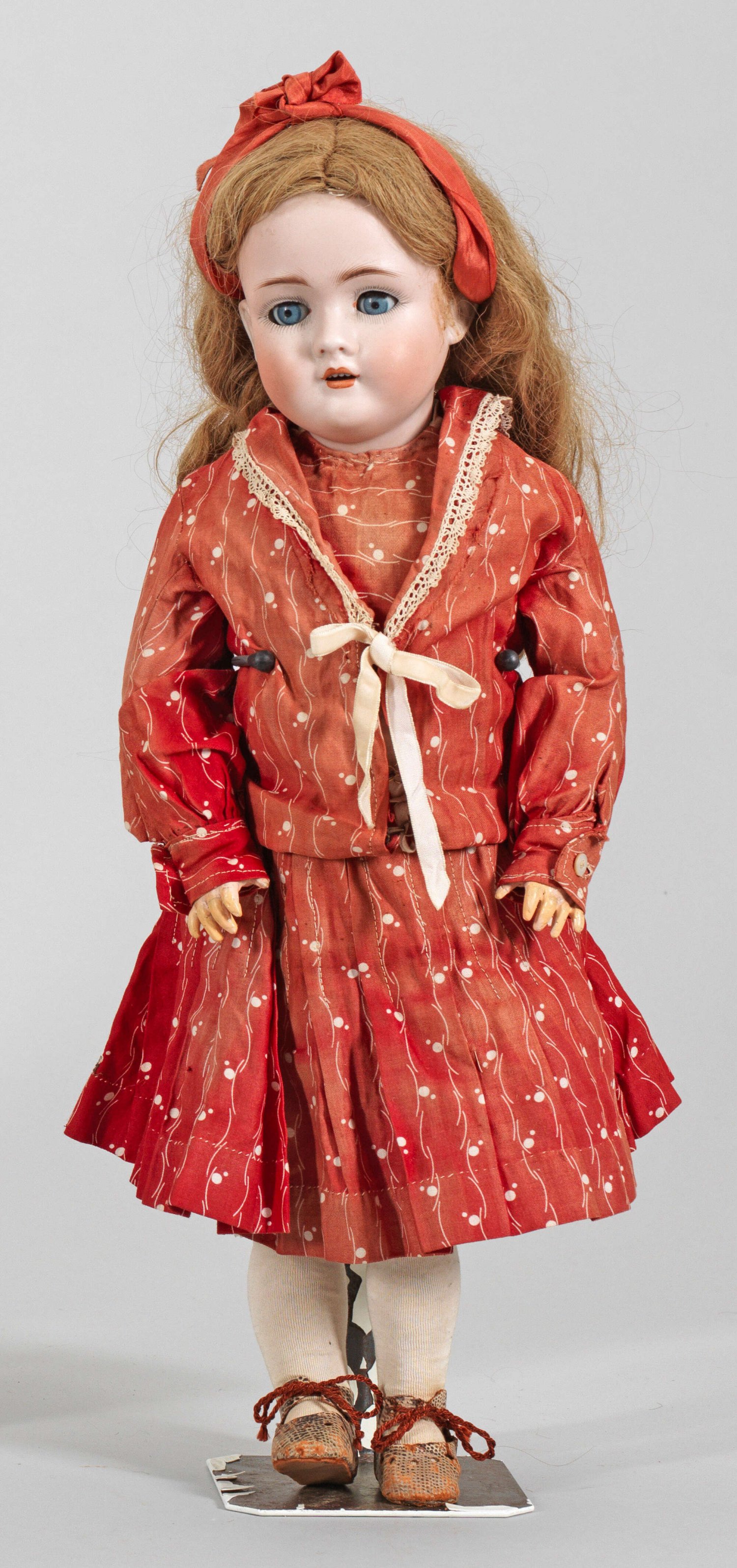 A German porcelain head doll by Kley & Hahn. Minor wig pull.