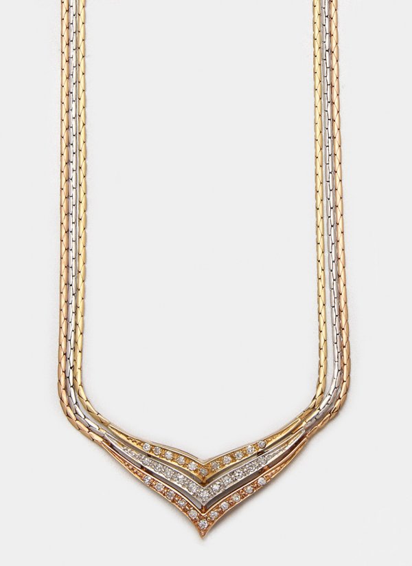 Feines Diamantcollier Gelbgold, gest. 585. Schauseitig mit kleinen Diamanten besetzt. Gew. ca. 13,18 g.