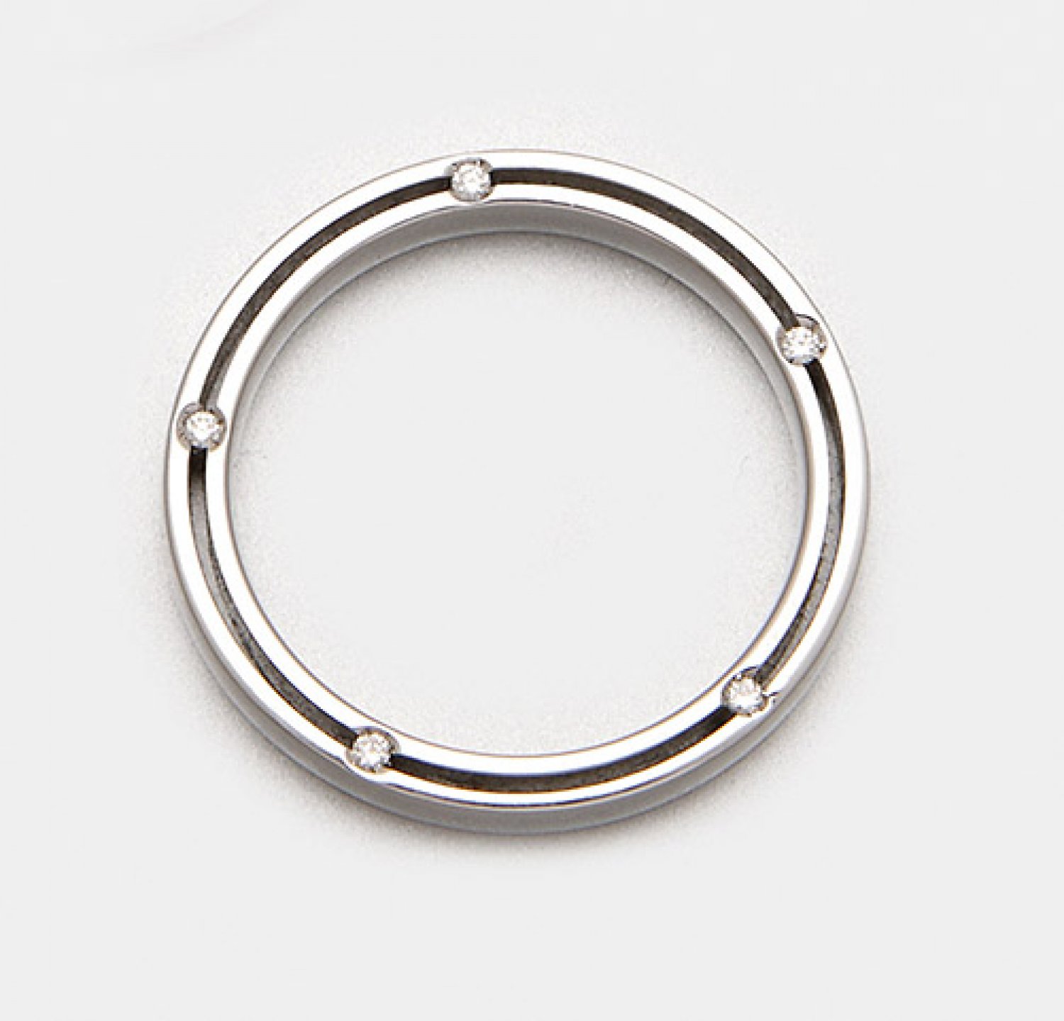 Bandring von Damiani "Brad Pitt" Weißgold, gest. 750. Seitlich besetzt mit Diamanten von zus. ca. 0,09 ct. (F-G/vsi). Herstellerzeichen. Gew. ca. 6,94 g.