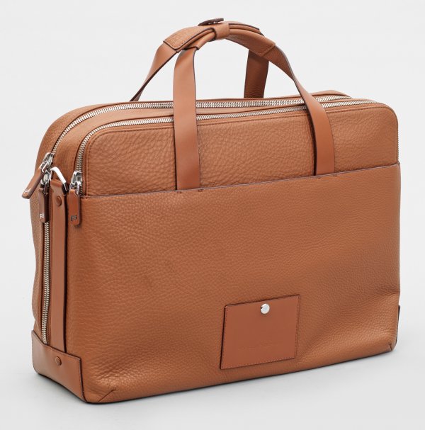 Porsche Design-Aktentasche "Voyager" Braunes, genarbtes Rindsleder. Rechteckiger Korpus mit zwei Reißverschlüssen für zwei Hauptfächer sowie zwei Handhaben. Innen diverse Nebenfächer, teilw. mit Reißverschluss. In der Front kleines Fach sowie vorder- und rückseitig flaches Nebenfach. Abnehmbarer breiter Schulterriemen. Herstellerzeichen. Originaler Staubbeutel. Neuwertig. H. 29 cm. 42 cm x 14 cm.