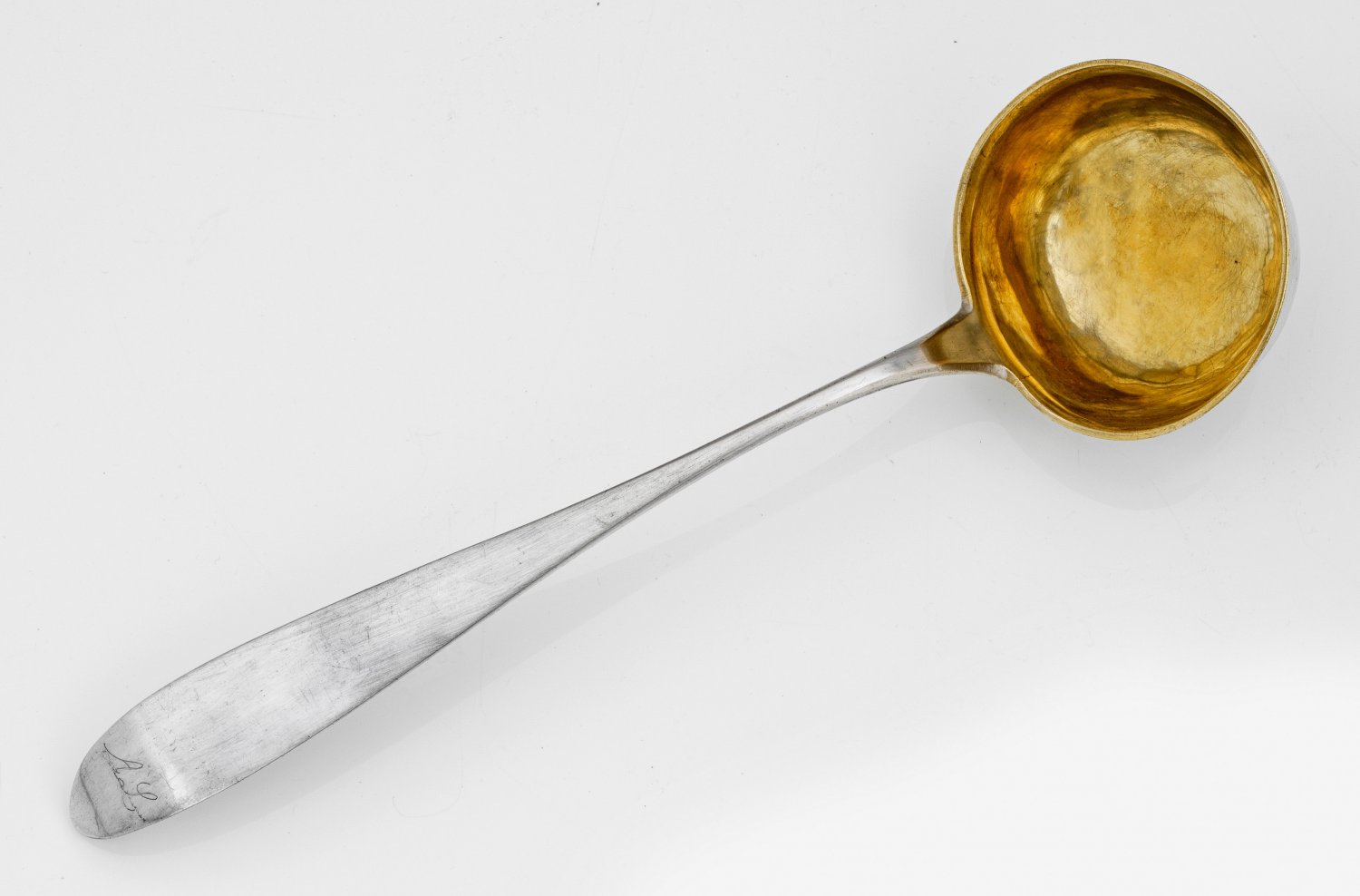 An Austrian parcel-gilt silver ladle probably by Joseph Haltmeyer (master since 1826). Gilt inside. Partly damaged. City- and master´s mark.