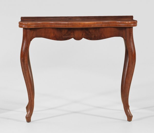 Louis Philippe-Klapptisch Mahagoni. Passig geschweifte, ausziehbare Zarge auf hohen, geschwungenen Beinen als Träger für korrespondierende, aufklappbare Deckplatte. H. 77,5 cm. 89 cm x 44,5/90 cm.