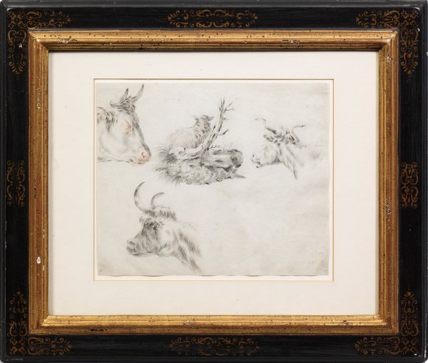 Tierstudien mit ruhendem Schaf, Ochsen- und Rinderköpfen