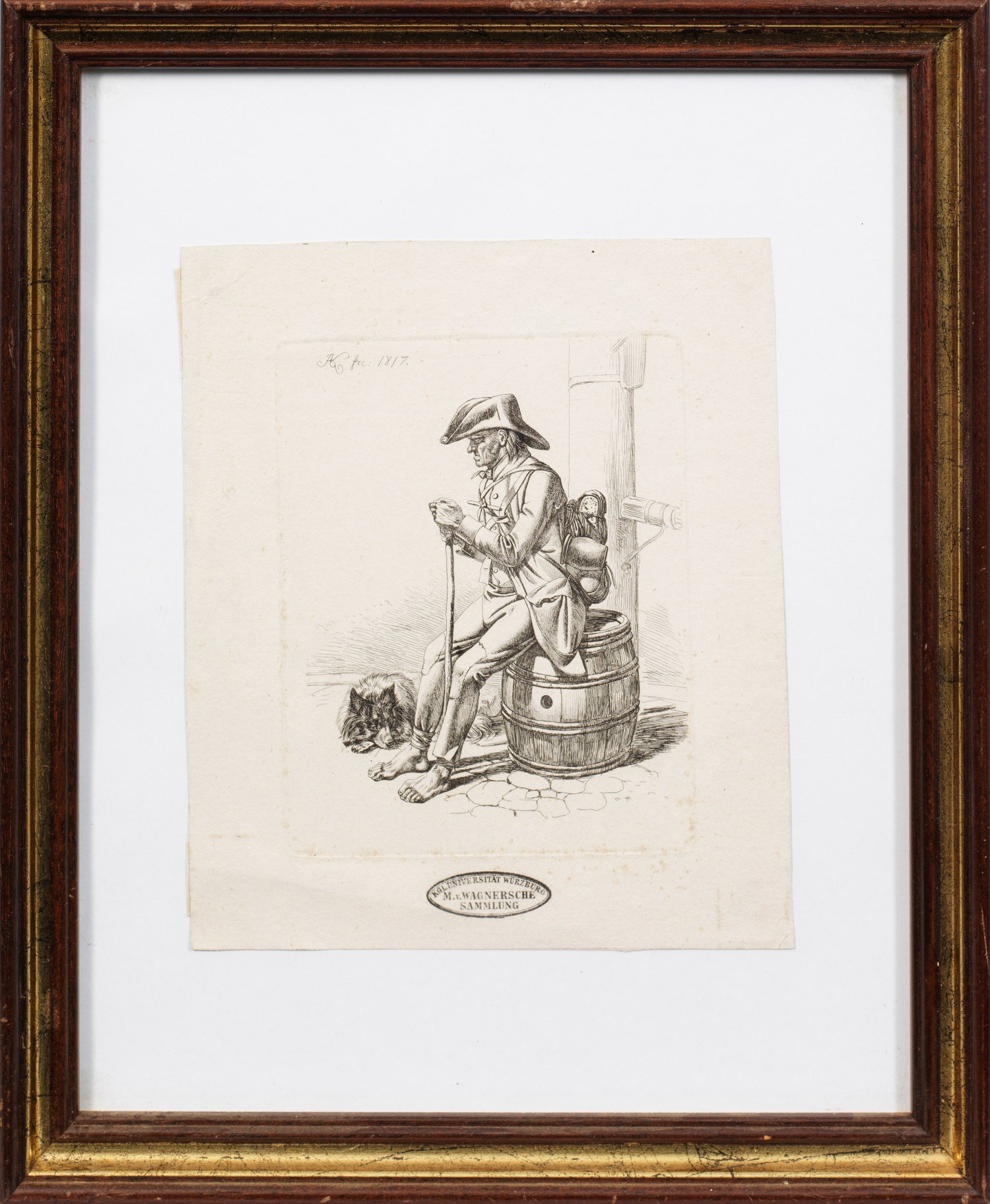 Radierung/Papier, 1817. In der Platte Ligatur-Monogr. "JAK" mit Dat. "fec. 1817". Im Blattrand Sammlungsstempel "KGL. UNIVERSITÄT WÜRZBURG M. V. WAGNERSCHE SAMMLUNG" (Lugt 2541b). Plattenmaß ca. 14,5 cm x 11 cm; Blatt 19,5 cm x 16 cm. Rahmen.