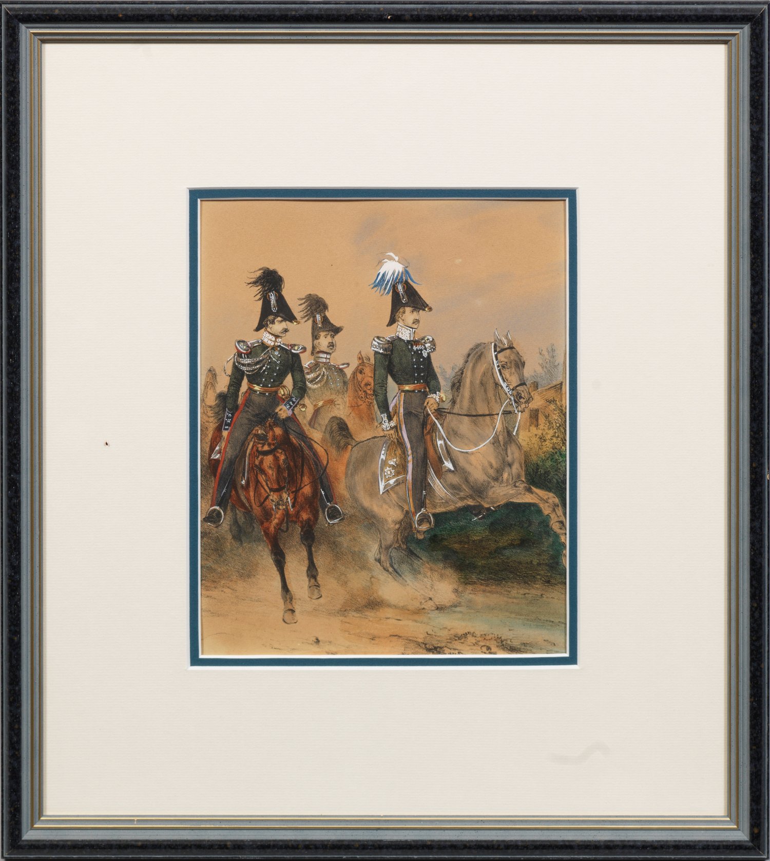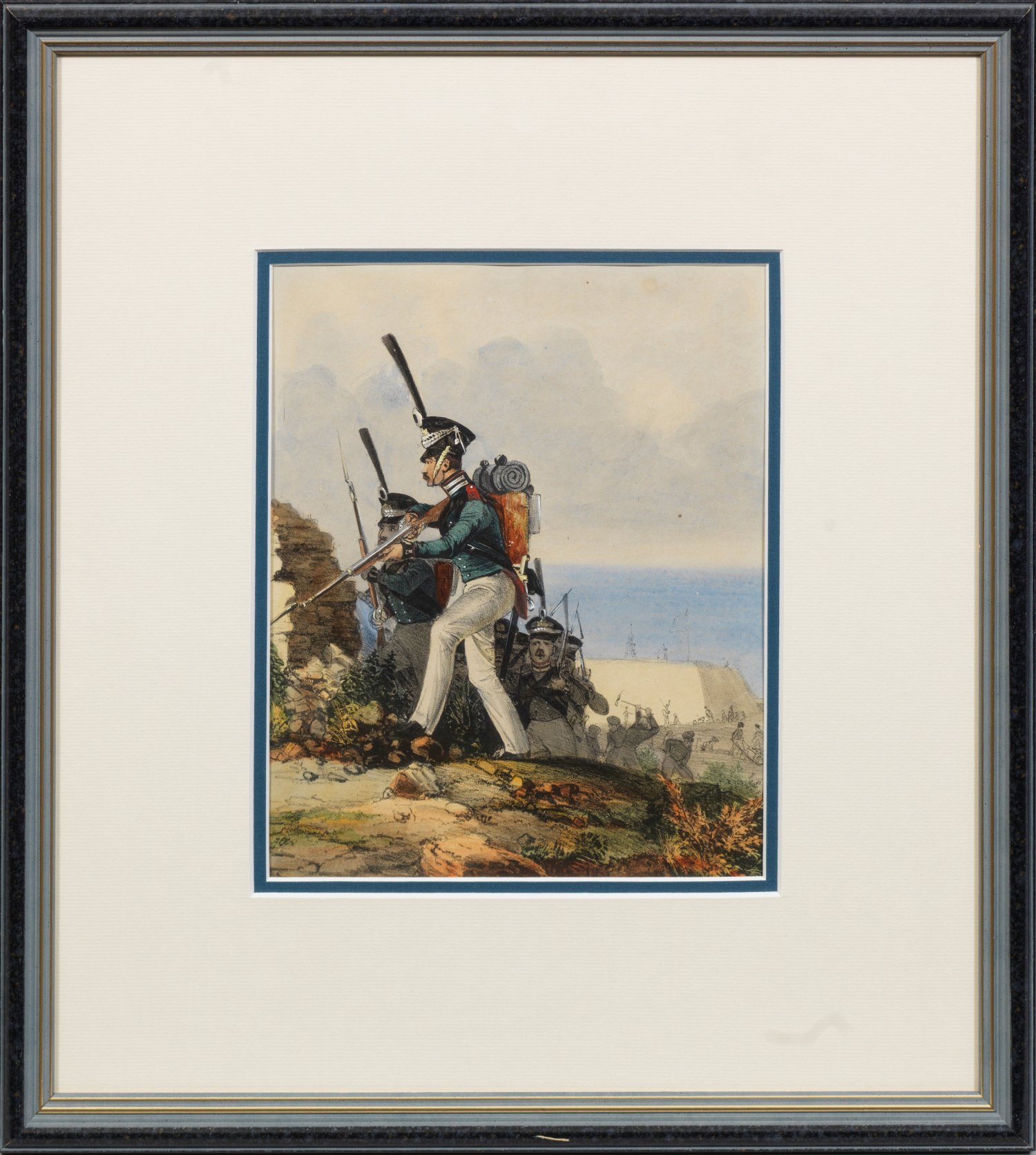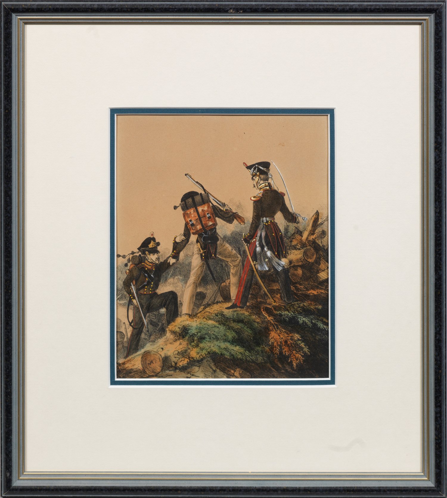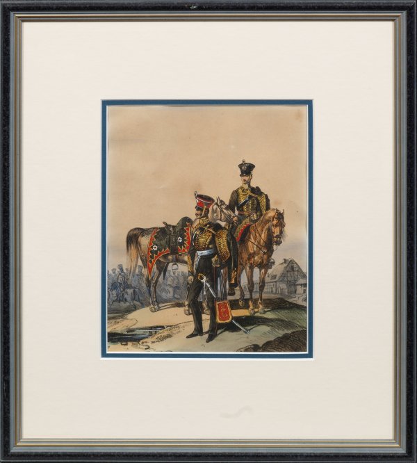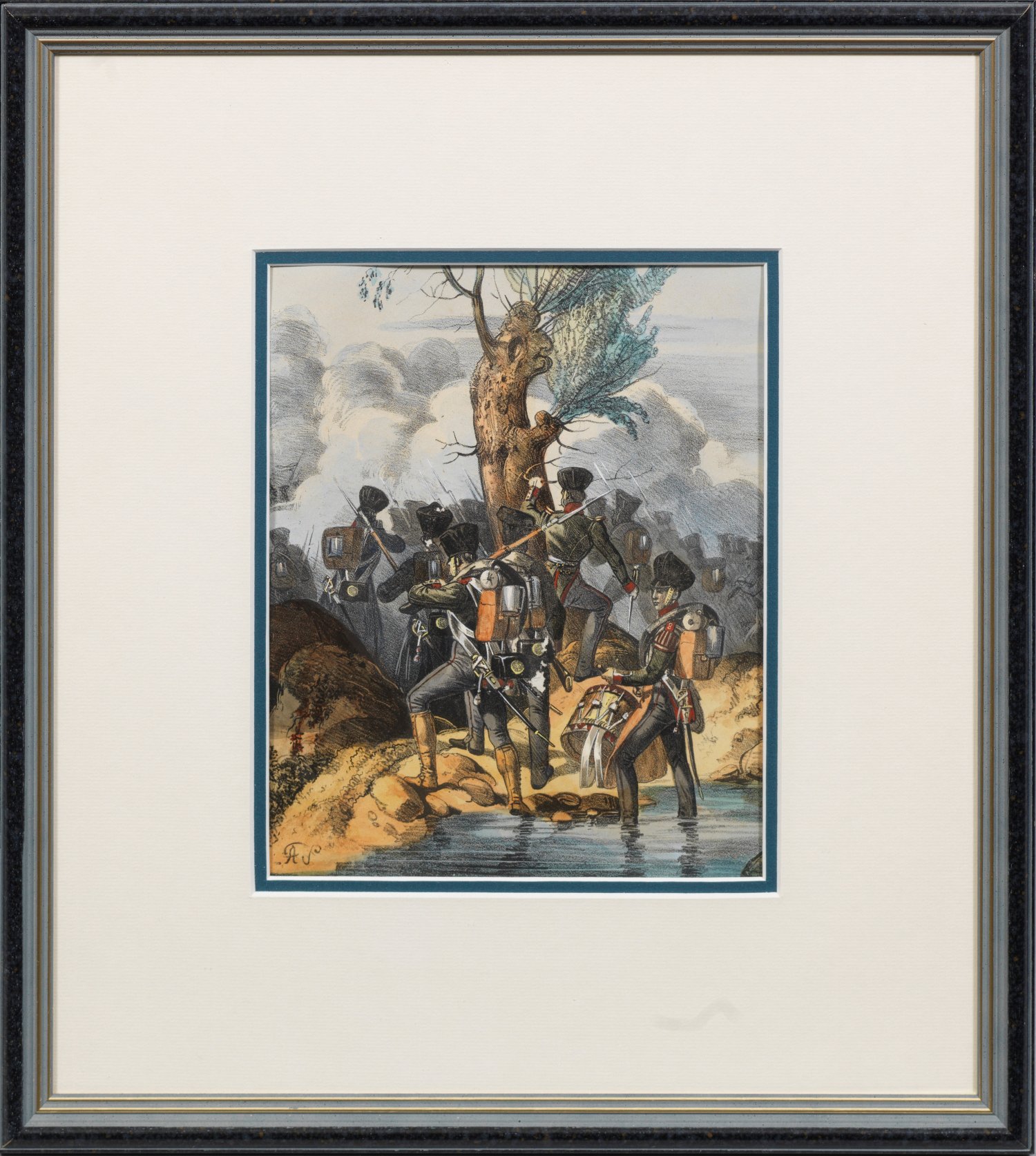 Six hand-colored lithographs with German soldiers by Heinrich Ambros Eckert and Dietrich Monten published 1838-1843.