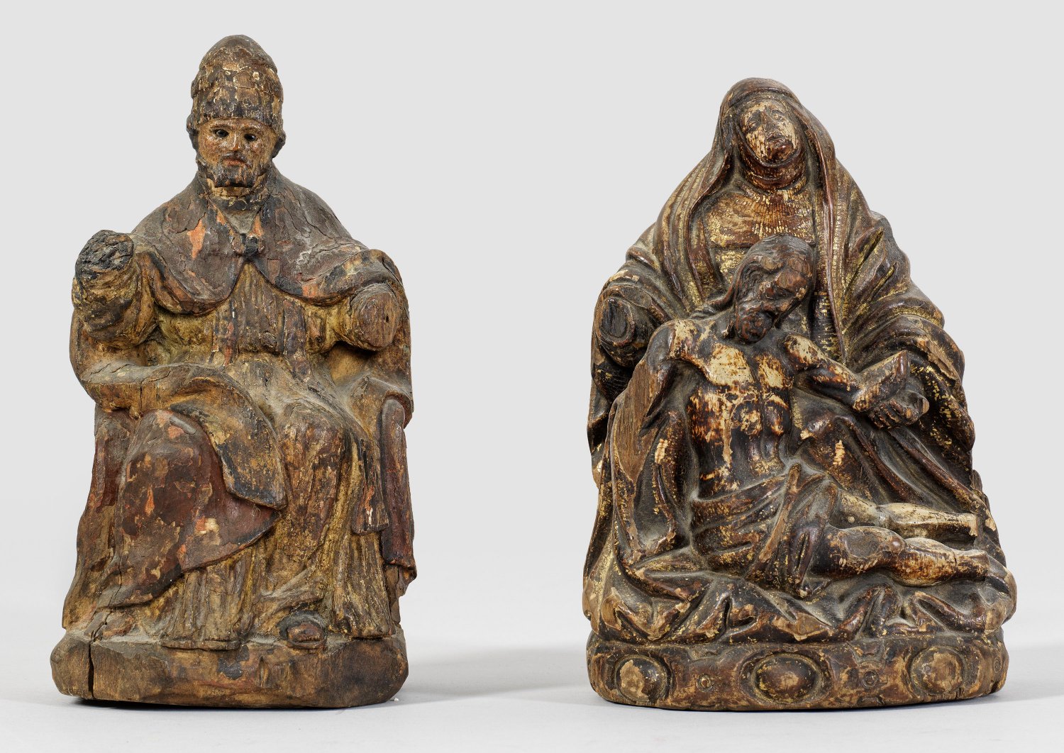 Zwei Skulpturen einer Pietà und eines Hl. Papstes