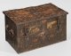 A polychrome painted South German iron Baroque coffer with crossed banding.