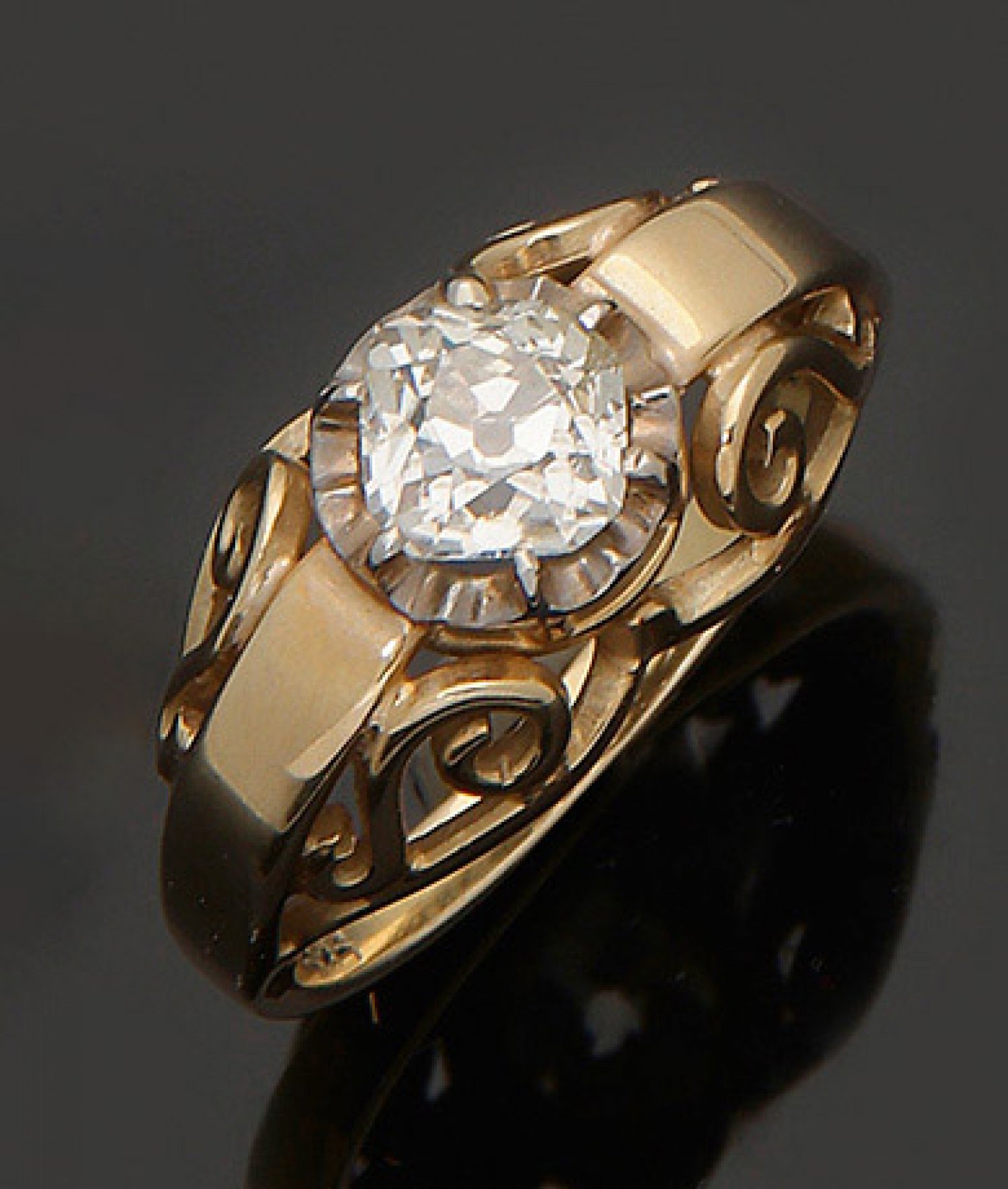 Diamantring aus den 30er Jahren Roségold, gest. 585. Zentral besetzt mit einem Altschliffdiamanten von ca. 1,00 ct. (H-J/pi2). Gew. ca. 6,93 g.