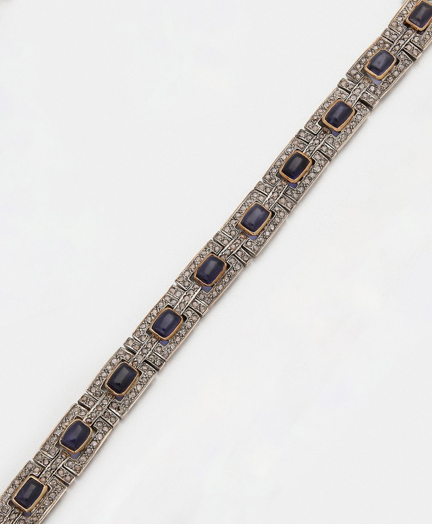 An Art Noueau bracelet set with sapphires approx. 6,00 ct. and antique diamonds approx. 2,00 ct., in silver, gilded.