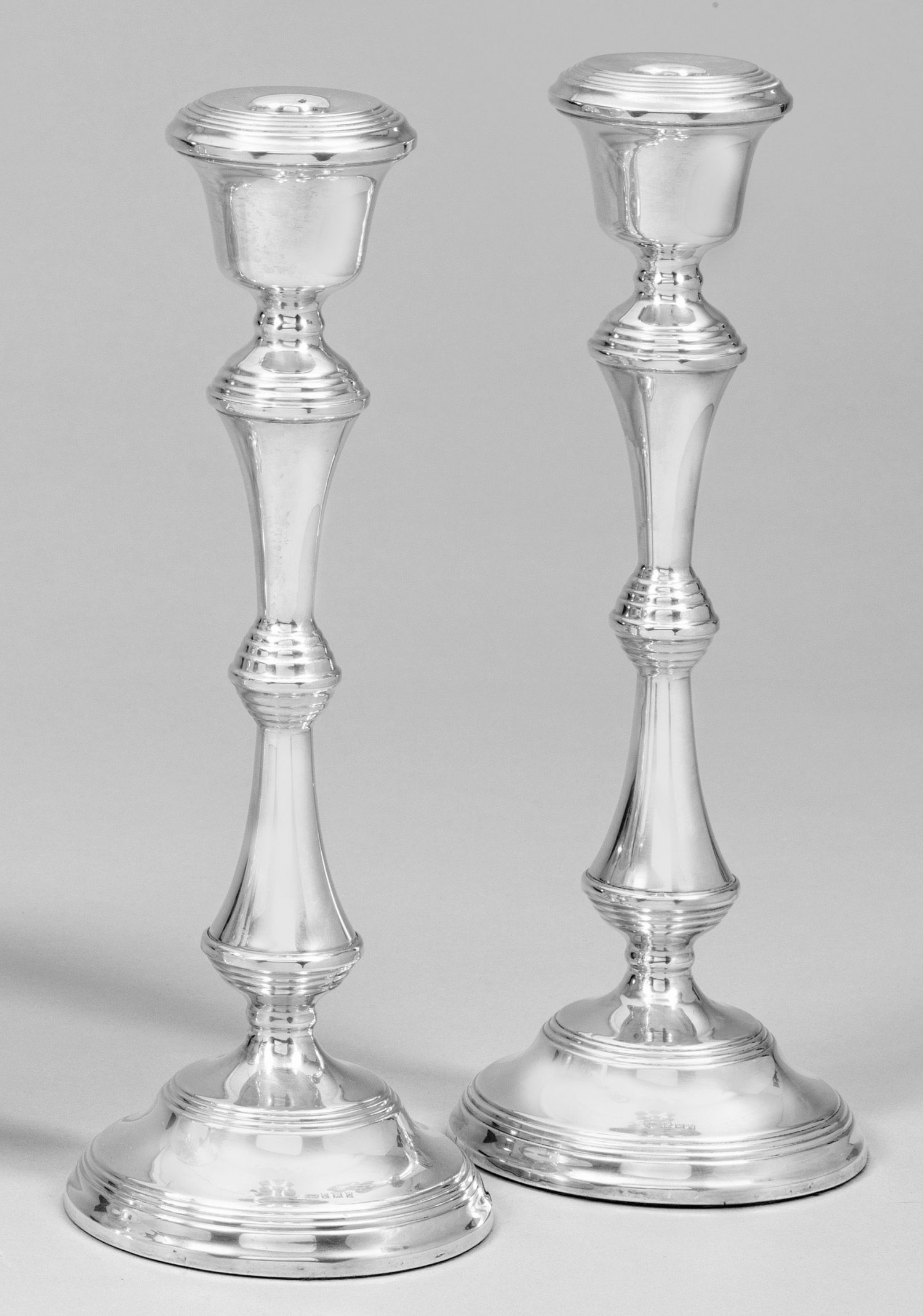 A pair of English silver weighted candlesticks. Minor signs of use. Assay and maker´s mark.