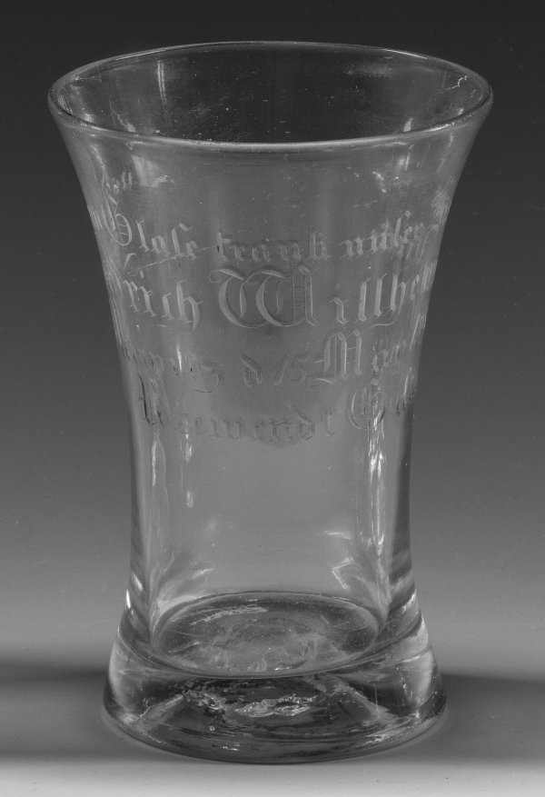 An engraved glass beaker used by King Frederick William IV of Prussia in May 1841.