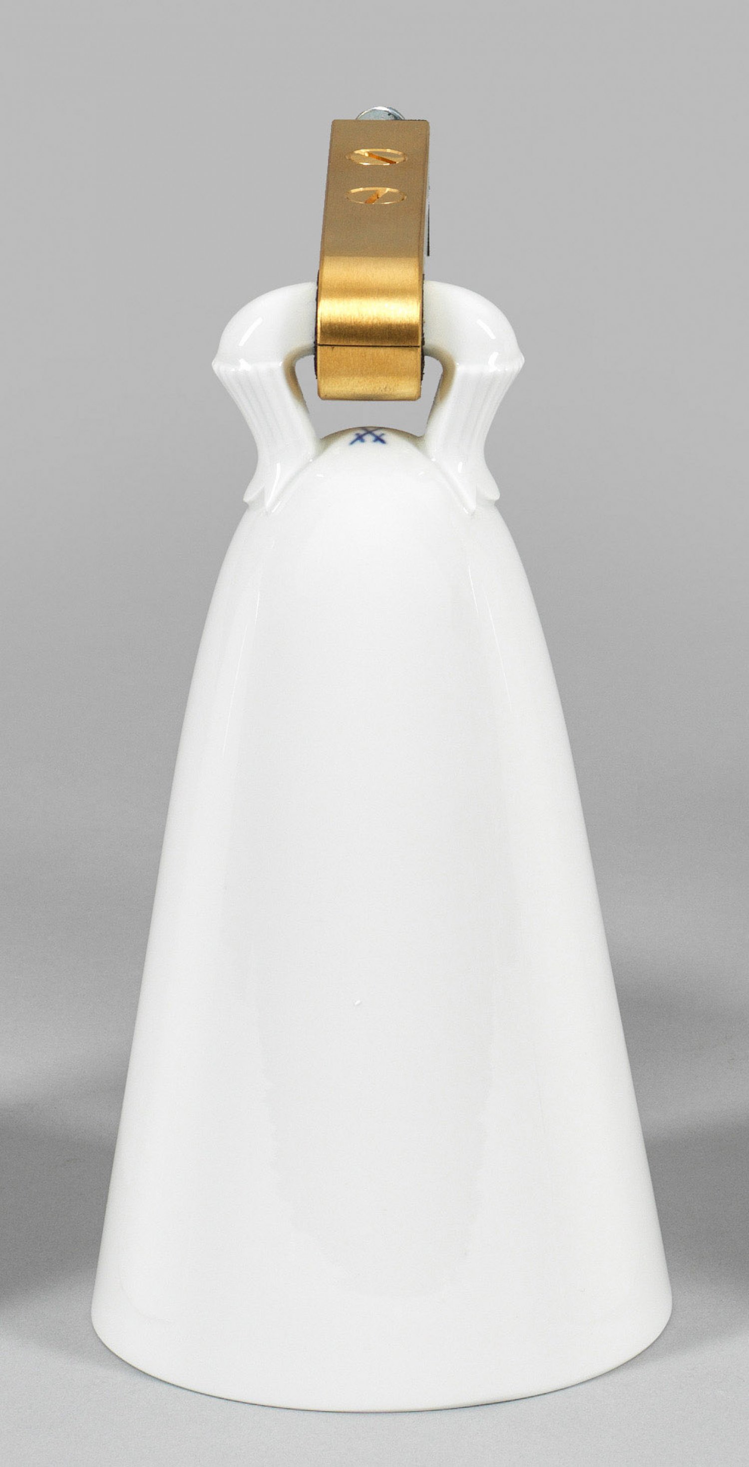 Kleine Glocke von Paul Börner Weißporzellan. Konisch mit gebogtem reliefiertem Griff. Entw. Paul Börner um 1927/28. Montierungsvorrichtung. Schwertermarke. H. 20 5 cm.