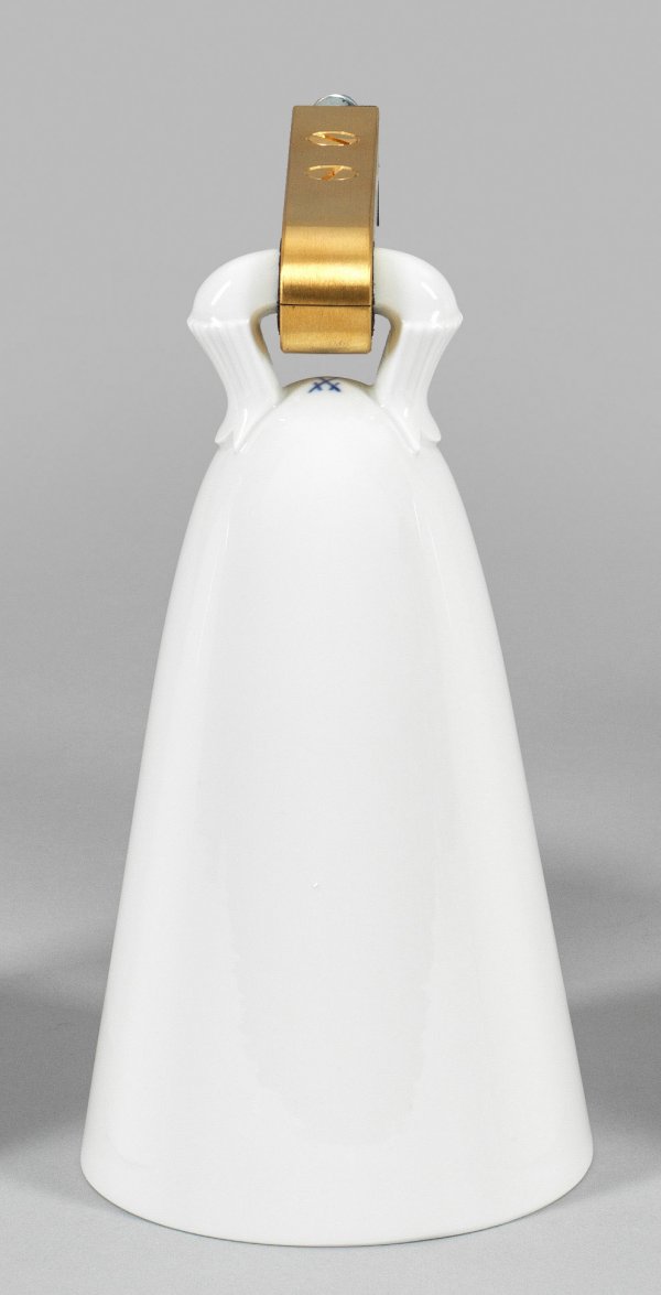 A large porcelain bell after the carillon of the Meissen Frauenkirche. Crossed swords mark.