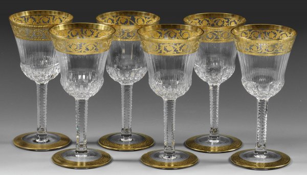 Lot 67: Satz von sechs Saint-Louis-Sherrygläsern "Thistle Gold"