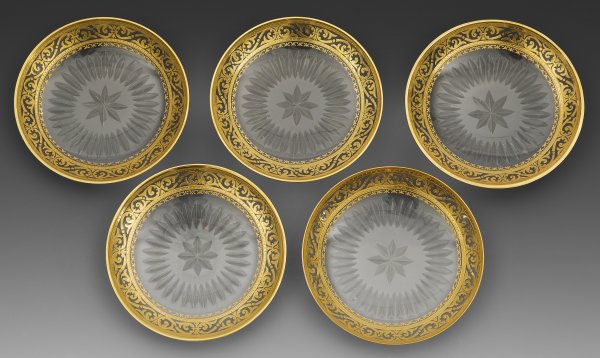 Lot 73: Fünf kleine Saint-Louis-Teller "Stella Gold"