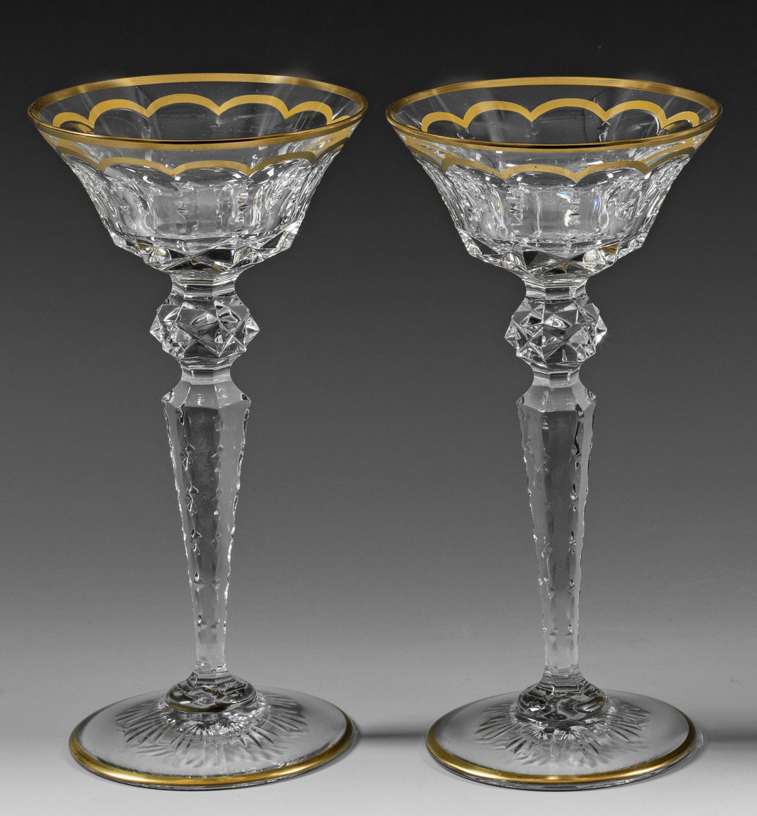 Two cut and gilt French Saint-Louis "Excellence" sherry glasses.