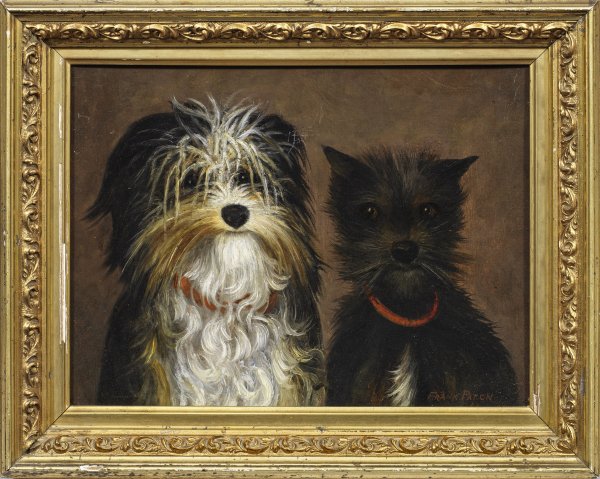 Paton, einer der bedeutendsten Tiermaler der viktorianischen und edwardianischen Epoche, malte mit Vorliebe Hunde- und Katzenmotive. 1878-1890 beschickte er die Ausstellungen der Royal Academy, weite Popularität erreichte er durch seit 1880 in großen Auflagen gedruckte, von ihm geschaffene Weihnachtskarten. Öl/Malkarton. R. u. sign. (oder bez.). 23,5 cm x 30,5 cm. Rahmen.