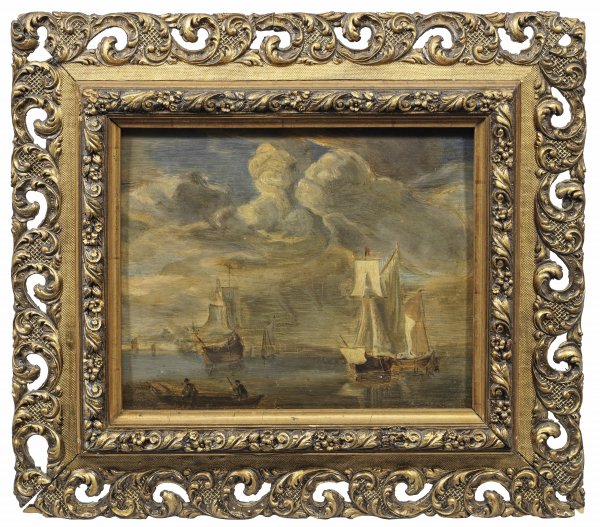 Feinflüssig gemalte Darstellung in der Tradition von Willem van de Velde (II). Öl/Eichenholztafel. 25,5 cm x 32 cm. Rahmen.