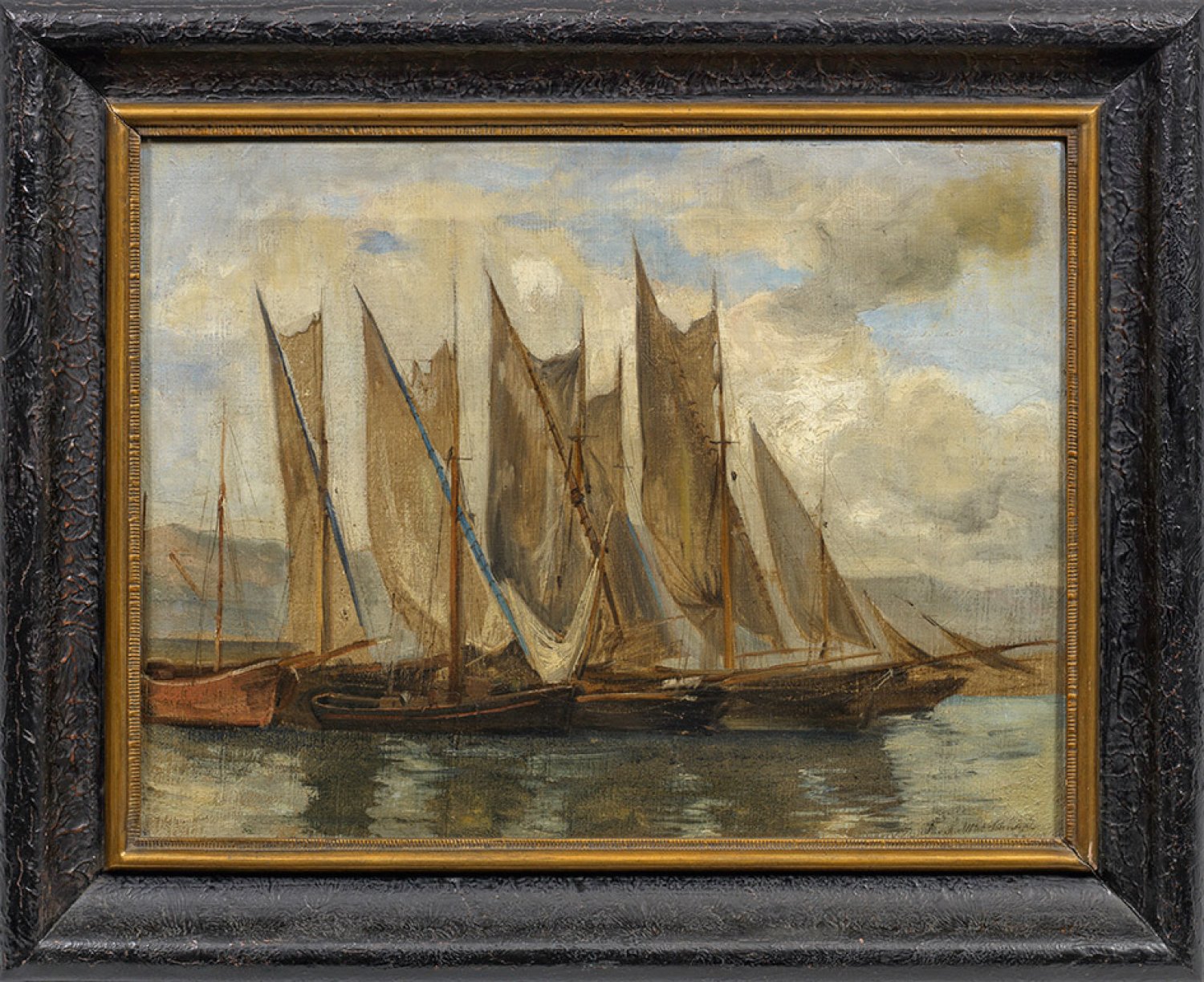 Öl/Lwd.; R. u. sign.; Verso undeutl. bez. (Ortsangabe?) 43 cm x 57,5 cm. Rahmen.