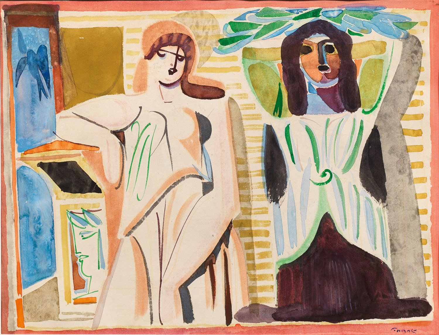 Frank studierte ab 1926 Kunst, u. a. für kurze Zeit bei Karl Hofer an der Berliner Kunstakademie. Seine eigentliche Karriere setzte erst nach dem Zweiten Weltkrieg ein, als er Mitglied in mehreren neu entstandenen Künstlervereinigungen wurde. Er fand unter dem Eindruck der Klassischen Moderne einen eigenen, nie den Gegenstand negierenden Stil. In seinem umfangreichen, von der Aquarellmalerei bestimmten Werk geht es nicht um erzählerische Momente. Die Bilder erscheinen vielmehr als Chiffren für das menschliche Dasein. Aquarell/Papier. R. u. sign.; Passepartoutausschnitt 47 cm x 61,5 cm. Rahmen.