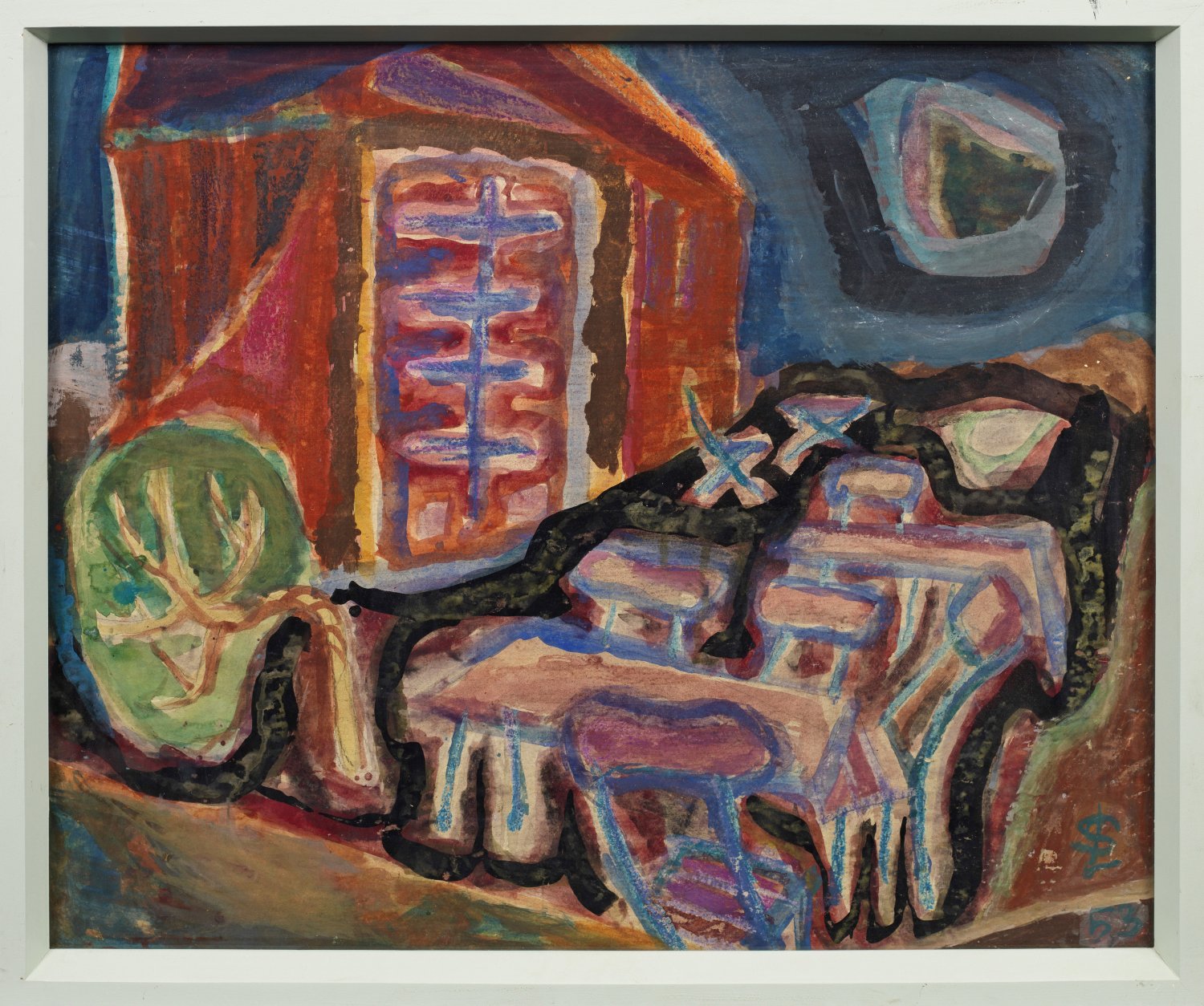 Tempera on paper (or cardboard). Signed with monogram and dated (19)53.
