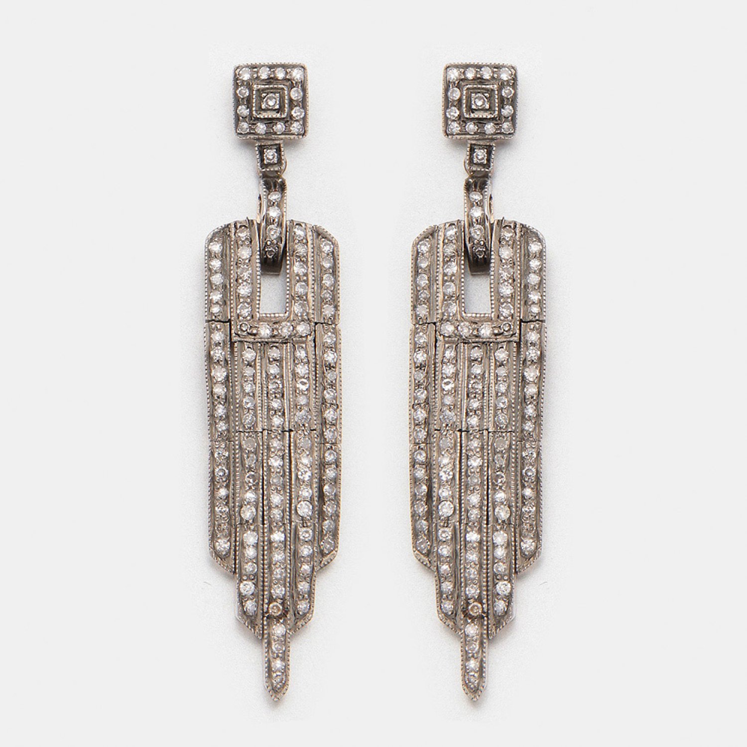 Pair of Russian earrings set with diamonds approx. 2,80 ct., in 14 k gold and silver.