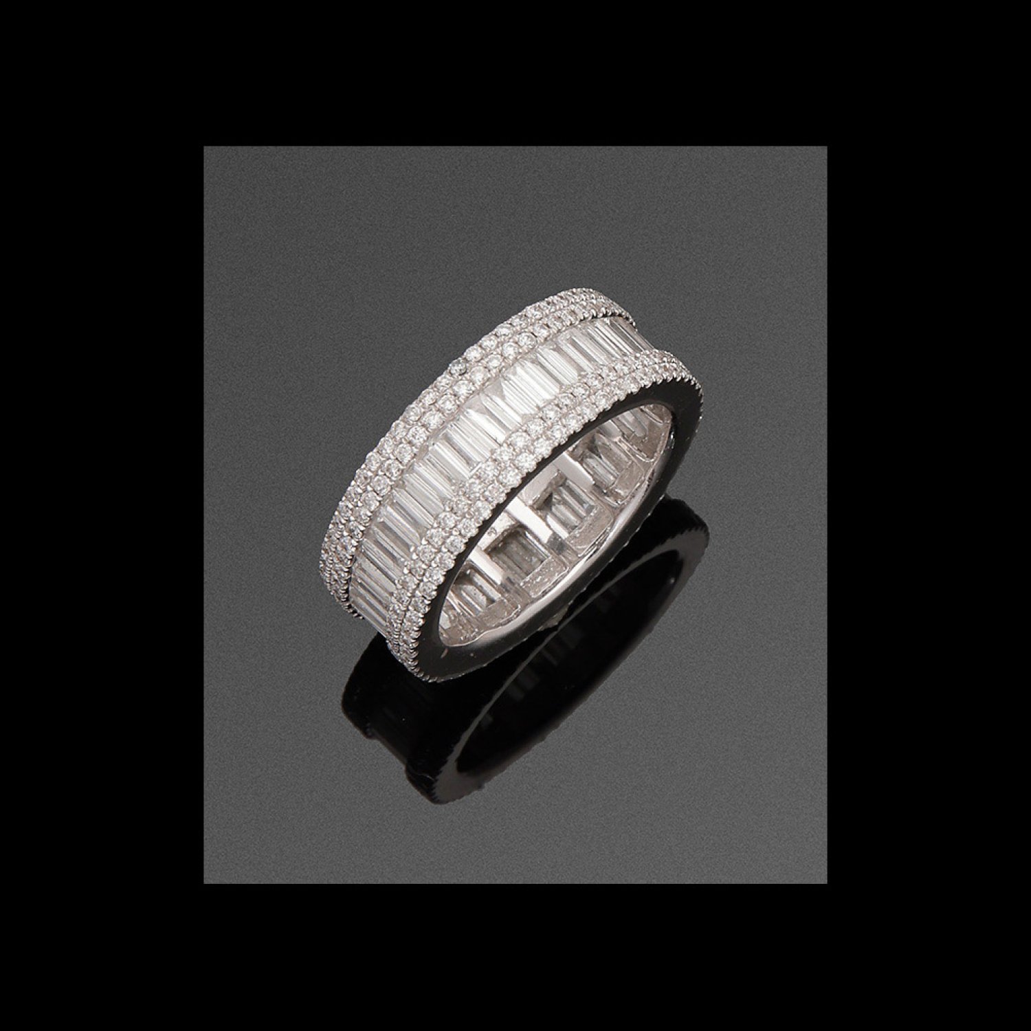 Weißgold, gest. 750. Umlaufend besetzt mit kalibrierten Diamantbaguetten von zus. ca. 2,86 ct. (F/vvs). Gew. ca. 8,09 g.