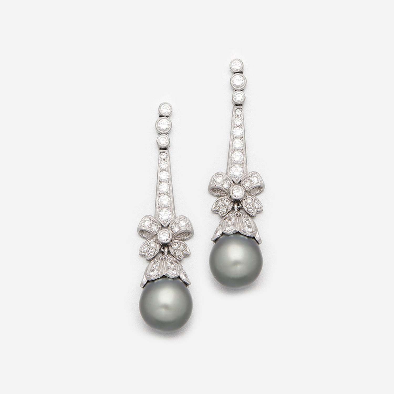 Lot 1273: Art Déco Brillant-Ohrringe mit Tahitiperlen