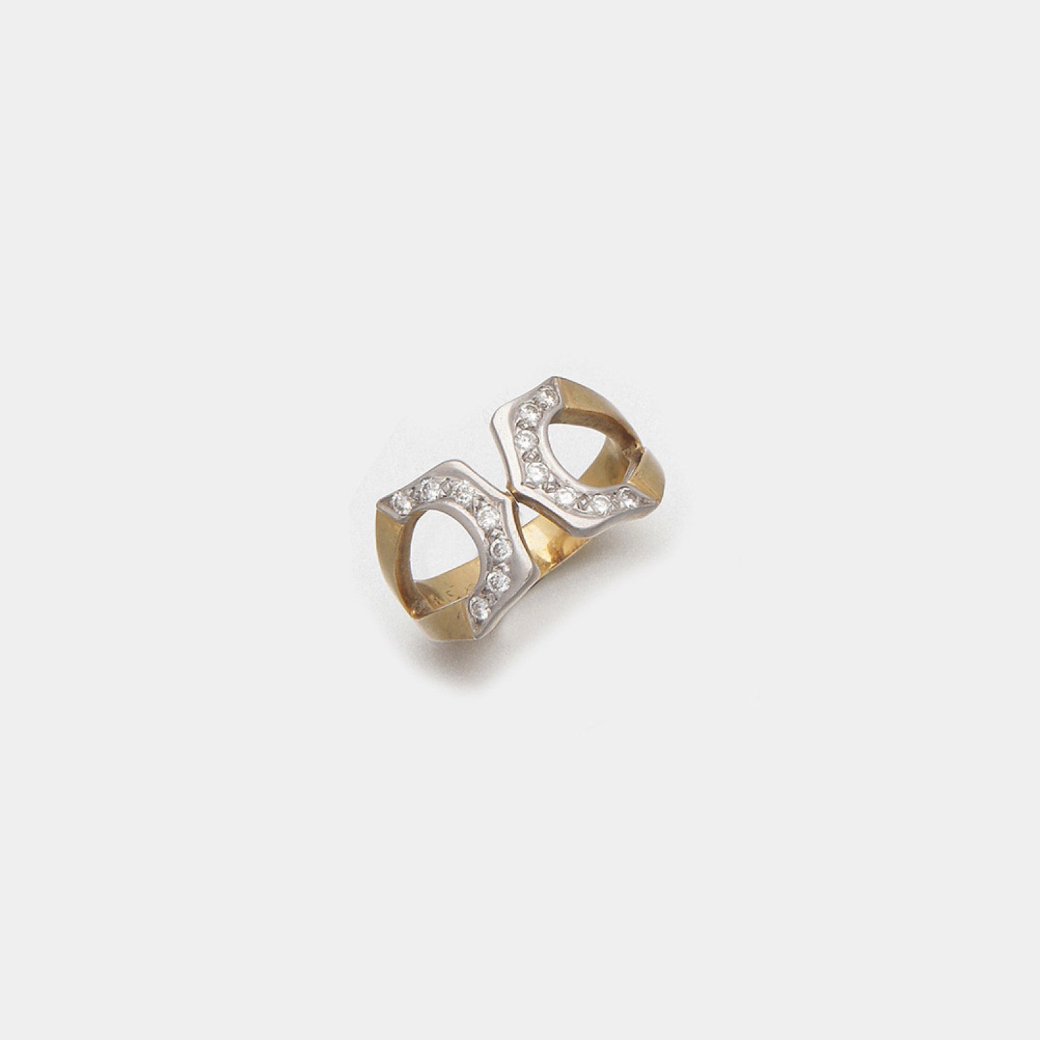 Gelbgold, teilw. mit Weißgold verbödet, gest. 585. Schauseitig besetzt mit Diamanten von zus. ca. 0,30 ct.; Gew. ca. 5,51 g.