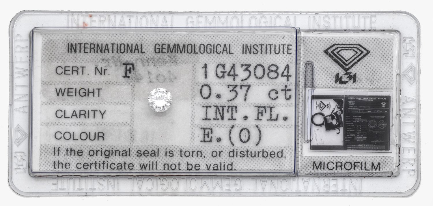 Unset brilliant solitaire approx. 0,37 ct. (E/if). Certificate included.