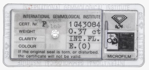 Ungefasst, ca. 0,37 ct. (E/if), in Blisterverpackung verschweißt mit Microfilm.