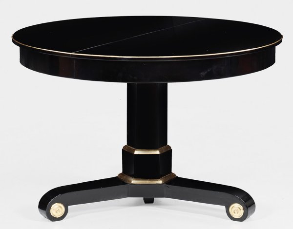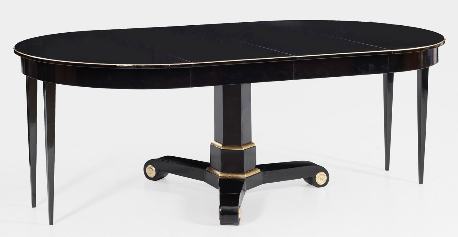 A black lacquered Empire style dining table.