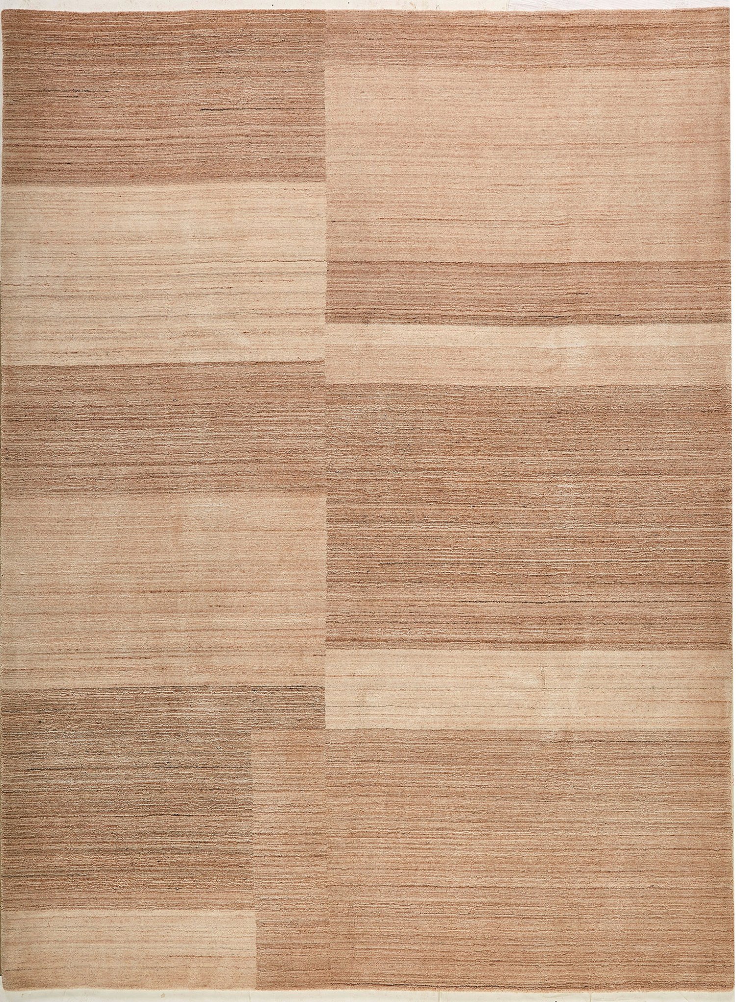 Wolle auf Wolle. Flächendeckende Musterung aus unterschiedlich großen, teilw. asymmetrisch angeordneten Feldern in abraschierten Beige- und Brauntönen. 180 cm x 248 cm.