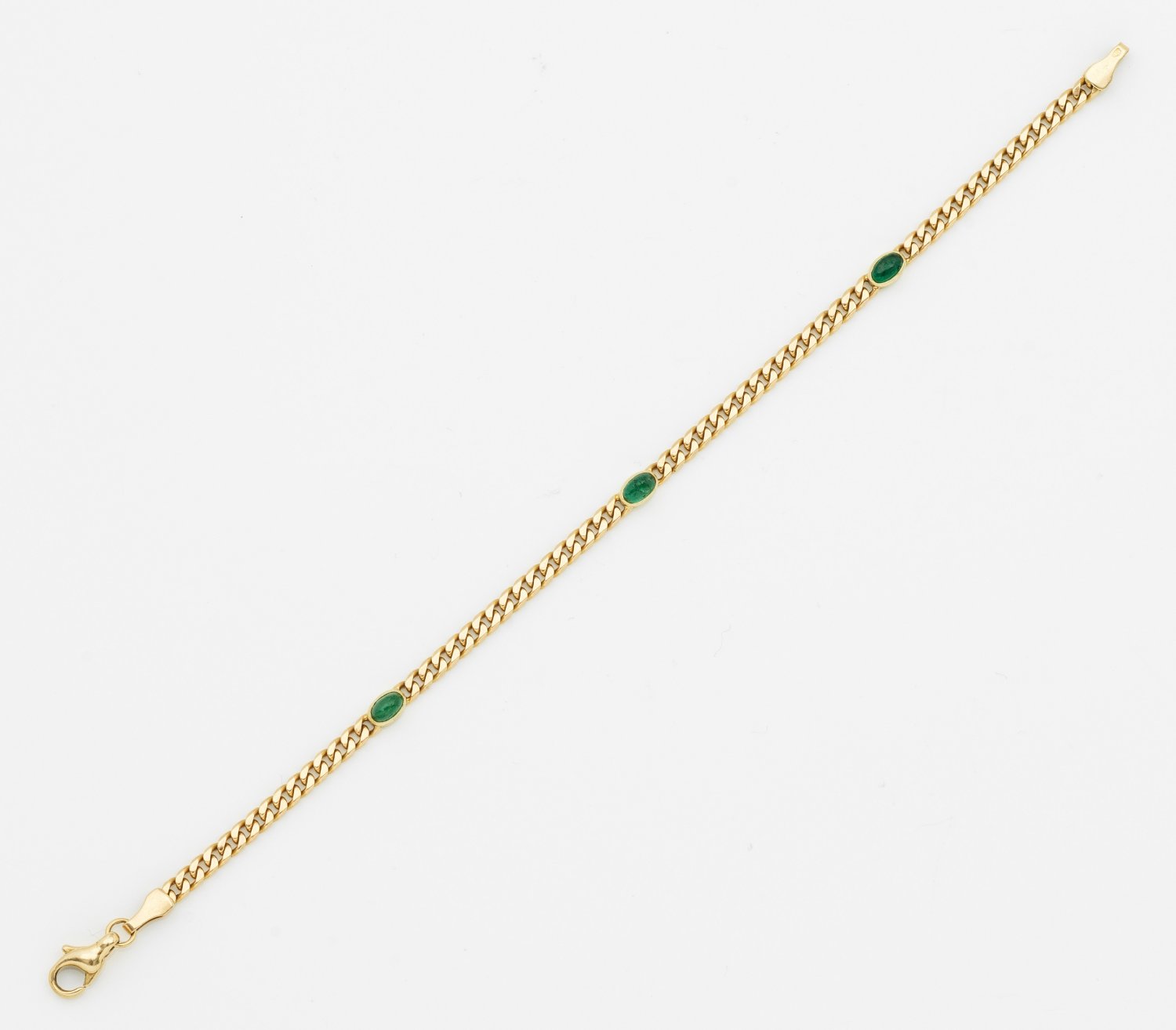 Bracelet set with 3 emeralds approx. 0,80 ct., in 14 k gold.