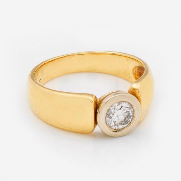 Ring set with diamonds approx. 0,80 ct., in 14 k gold and platinum.