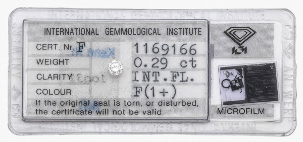 Ungefasst, ca. 0,29 ct. (F/if), in Blisterverpackung verschweißt mit Microfilm.