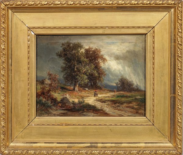 Öl/Lwd.; R. u. Ligatur-Monogramm. 13,5 cm x 18 cm. Rahmen.