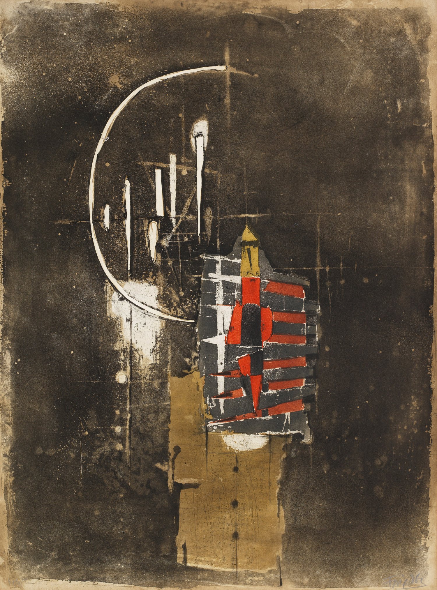 Farbaquatintaradierung mit Prägedruck/Velin von Arches (Wasserzeichen), 1972. R. u. sign.; L. u. nummeriert 47/95. Trockenstempel der Manus Presse. Wvz. Schmücking 432. Nachgedunkelt. Blatt 76,3 cm x 56,5 cm.