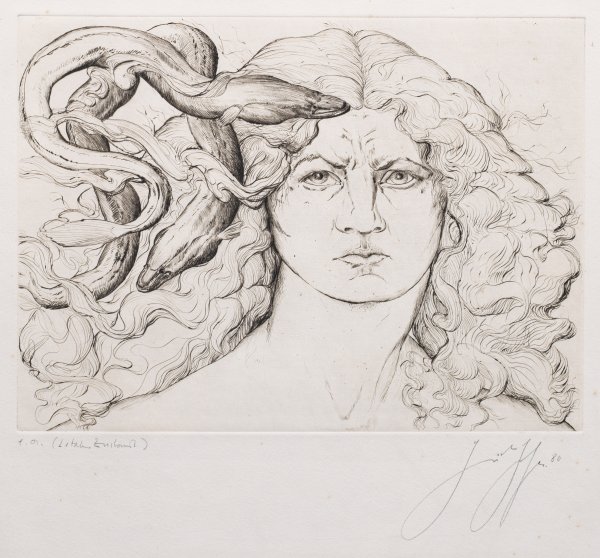 Etching on wove paper. Hand signed and dated (19)80. Inscribed "e.a. (letzter Zustand)" (artist's proof, final state). Minor foxing.
