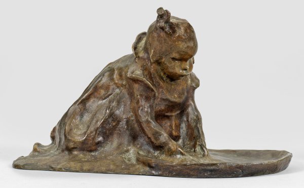 Bronze, braun patiniert, 1900/01. Sign. "B. Hoetger (/) Paris". Wvz. Werner Nr. 5, dort nur ein Exemplar bekannt. Rarer, wohlerhaltener Guss in schöner, nuancierter Patinierung. Die Bronze mit seiner lebhaften Modellierung gehört zu den frühesten Plastiken im Oeuvre des Bildhauers, Architekten, Malers, Grafikers und Designers. 1900-1907 hielt sich Hoetger in Paris auf, wo ihn Auguste Rodin und Aristide Maillol beeinflussten. Innerhalb weniger Jahre wandelte sich Hoetger zum Expressionisten, 1911 wurde er an die Künstlerkolonie Darmstadt berufen. 1914 ging Hoetger nach Worpswede, wo er durch Skulpturen, Bauten und die 1923-1927 von ihm geleiteten "Kunsthütten" die Kunst prägte, fortgesetzt 1927-1933 in der Böttcherstraße in Bremen und den dortigen Werkstätten. Ca. 15 cm x 25,5 cm x 14,5 cm.