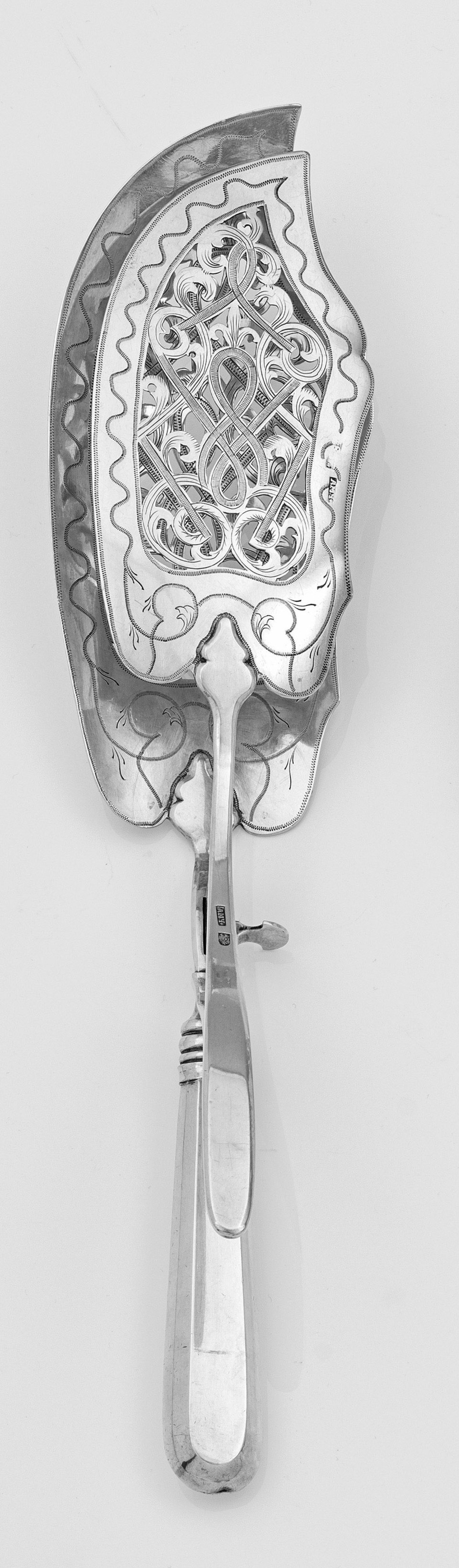 A Russian late Biedermeier silver fish server. Standard mark 84, assay master´s mark and unknown master´s mark. Dated.