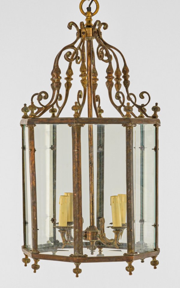 A large French patinated bronze ceiling lamp.