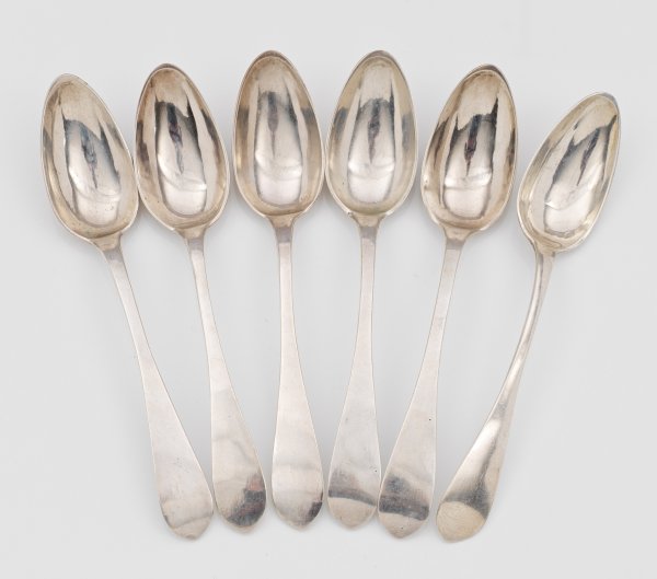 Six German Baroque silver spoons by Andreas Sebastian Mielach (master since 1778). Assay and master´s mark.