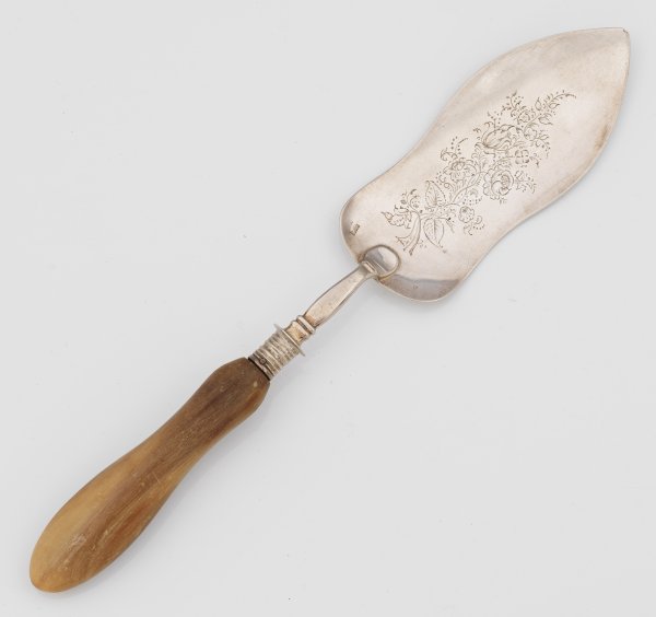 A Swiss Biedermeier silver lifter with horn handle probably by Heinrich Schmid (active around 1840). Assay and master´s mark.