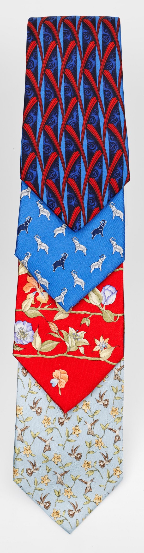 Four vintage ties. Manufacturer's mark. Signs of wear.