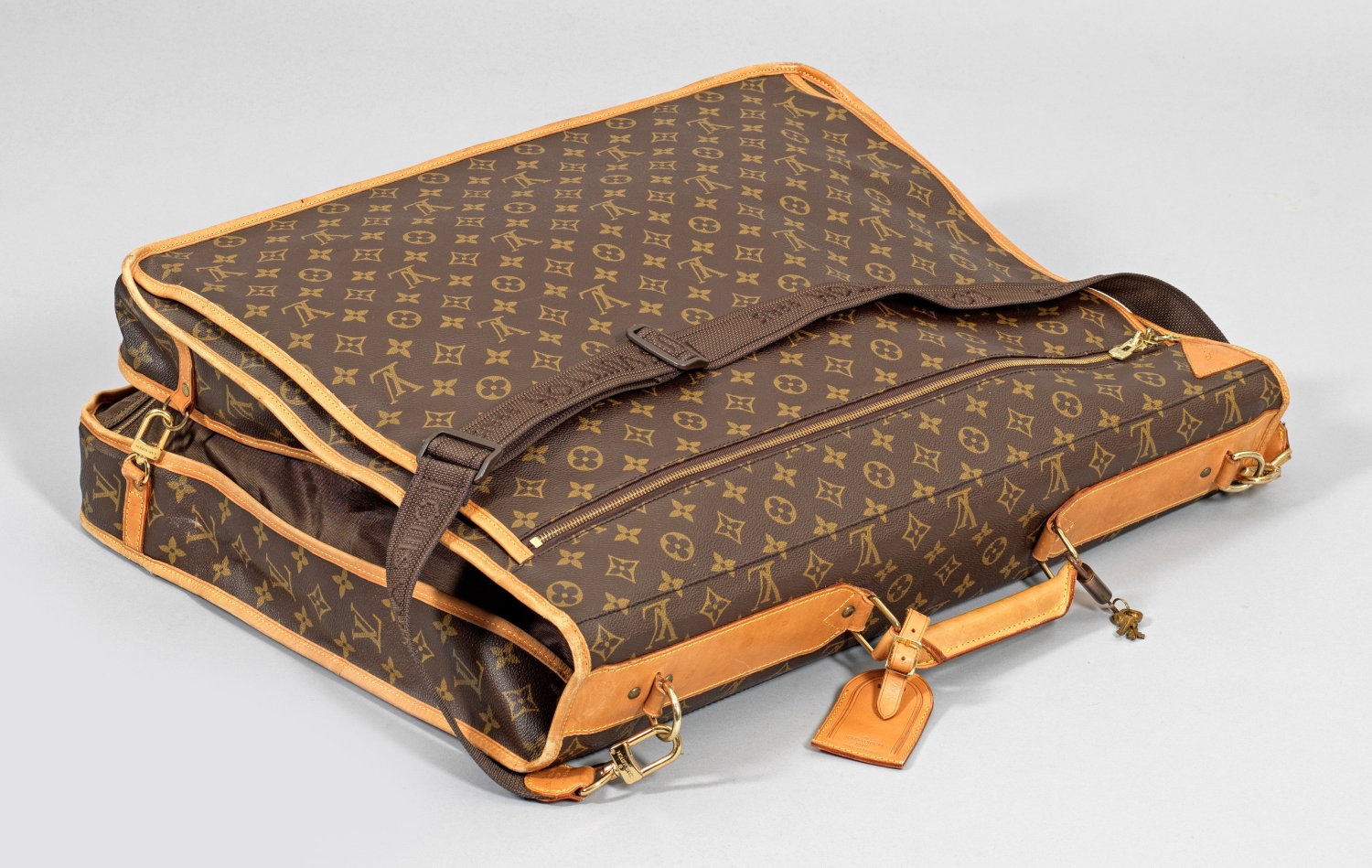 A vintage Louis Vuitton garment carrier with LV monogram. Manufacturer's mark. Signs of use. Flaws.