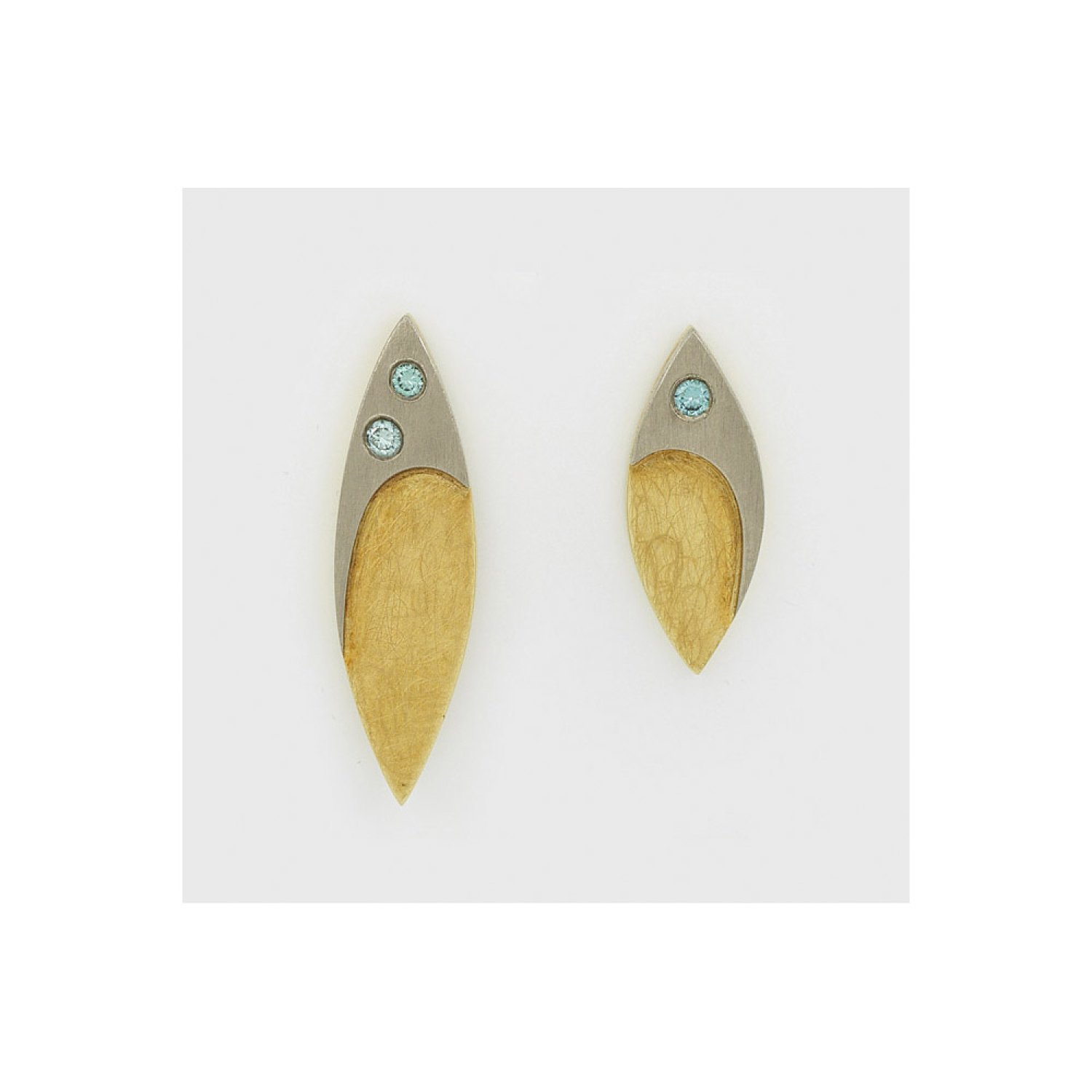 Gelbgold, gest. 585. Schauseitig besetzt mit 3 blauen Brillanten von zus. ca. 0,11 ct.; Sehr schöne Goldschmiedeausführung. Herstellerzeichen. Gew. ca. 8,32 g.