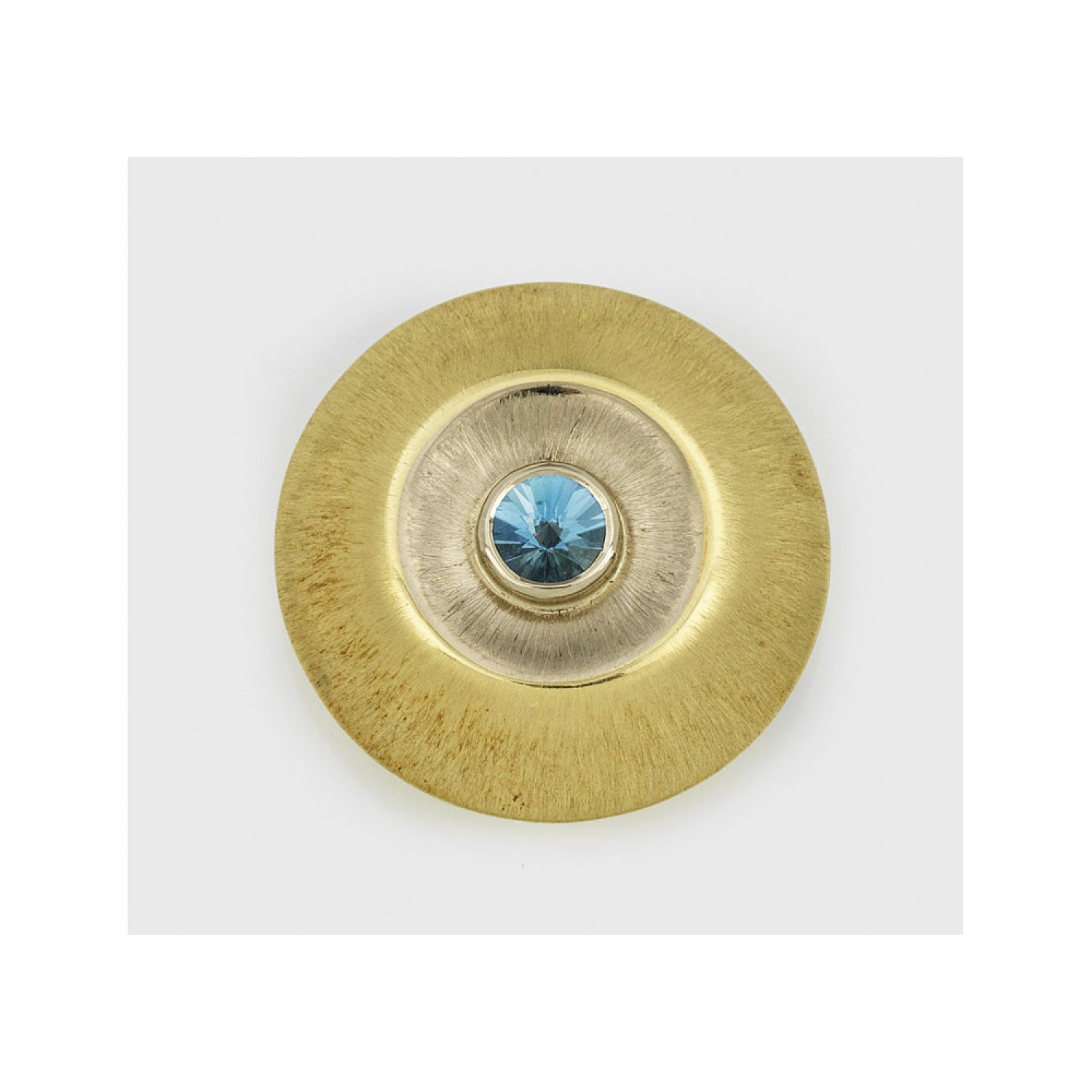 Gelbgold und Palladium, gest. 750. Satinierte Schauseite, zentral besetzt mit einem Aquamarin von ca. 1,25 ct.; Sehr schöne Goldschmiedeausführung. Herstellerzeichen. Gew. ca. 15,61 g.