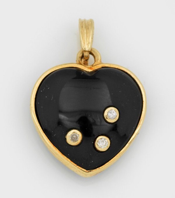Heart pendant with black enamel, in 14 k gold.