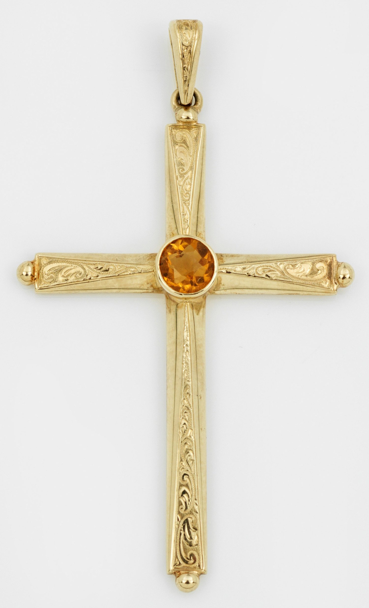 Gelbgold, gest. 585. Zentral besetzt mit goldgelbem Citrin von ca. 0,75 ct.; Gew. ca. 5,92 g.